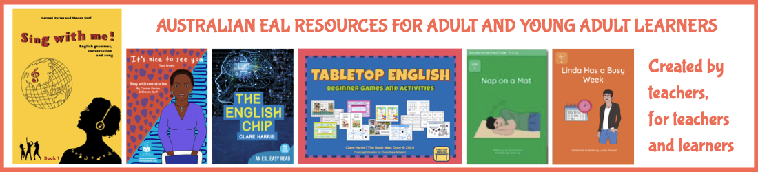 Teachers, tutors, and librarians – if you’re looking for Australian resources for your migrant English classroom or library (or you’d like to learn more about our publishing journeys), then please explore our site, which we’re busy updating. If you’re wondering ‘Where are the commercial resources?’ then read our ‘Why indie?’ article explaining why they hardly exist…